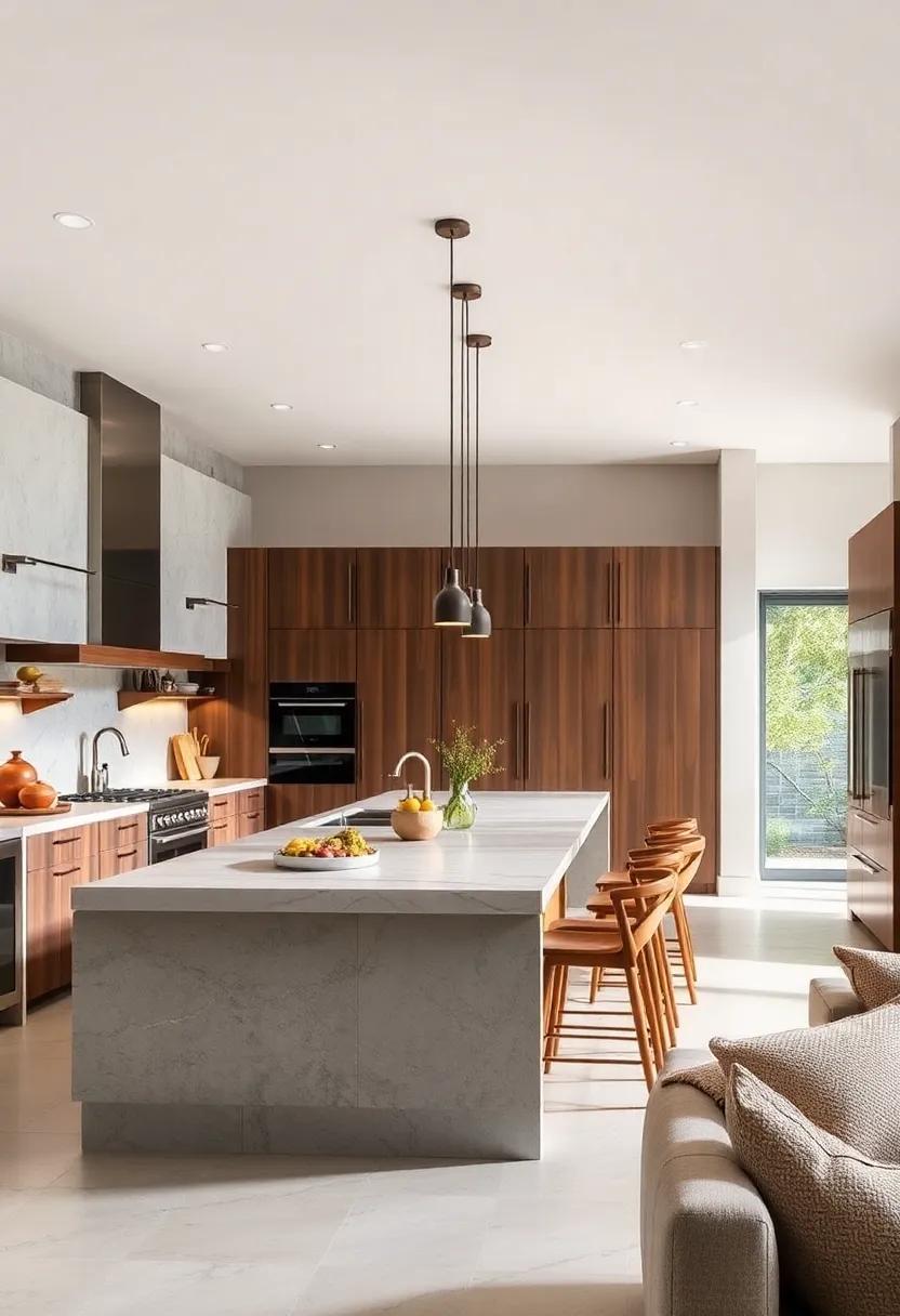 Imagine walking into a kitchen where the island is not just a place to prepare meals, but a dynamic hub for your culinary adventures. Multi-functional islands can seamlessly blend cooking, dining, and storage into one striking centerpiece. Consider extending the countertop overhang to create a cozy dining nook, allowing family and friends to gather around while you whip up gourmet meals. Incorporating built-in appliances, such as a microwave or a wine cooler, keeps everything within reach while maintaining a sleek aesthetic. You might also opt for tiered surfaces, where one level serves as a prep space while another is designated for casual meals.