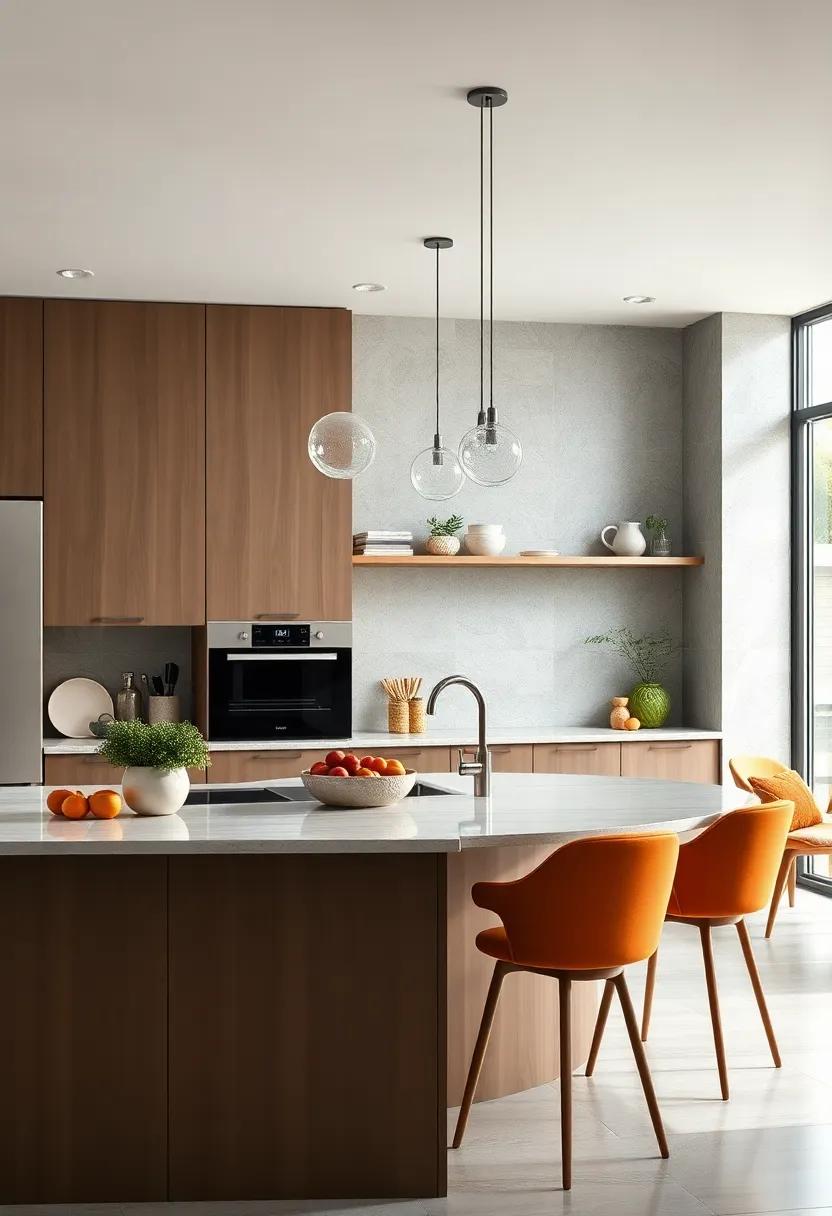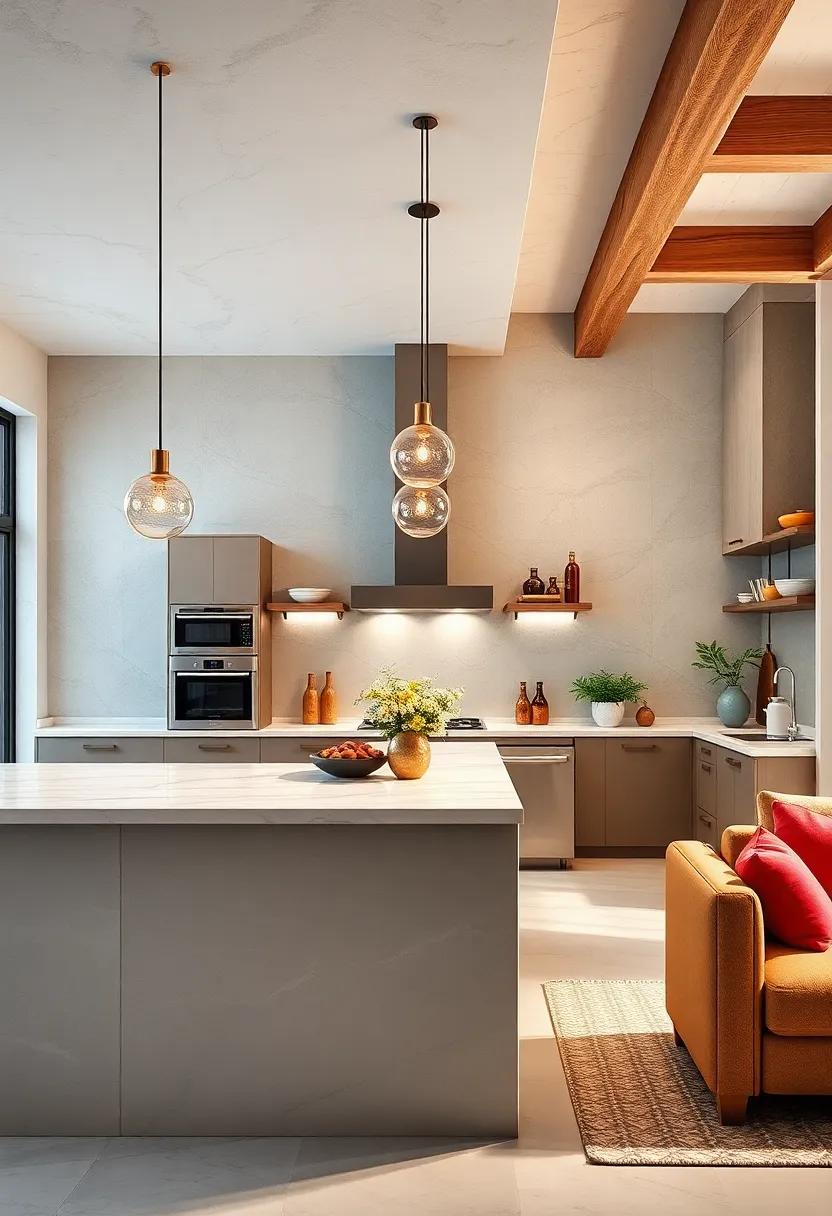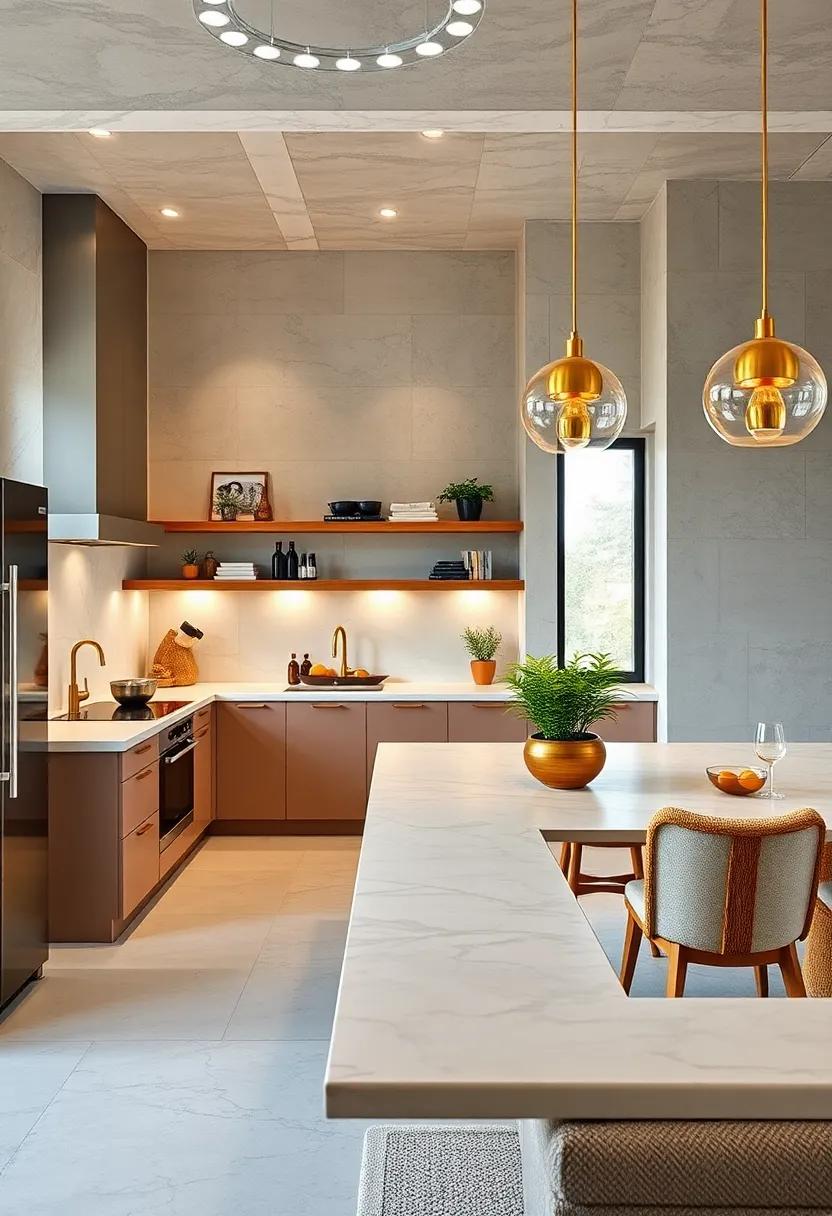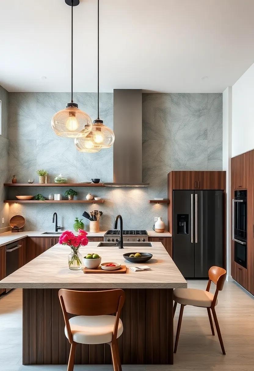 Statement Lighting: Invest in striking pendant lights or chandeliers that serve as functional art pieces, drawing the eye and elevating your kitchen’s design