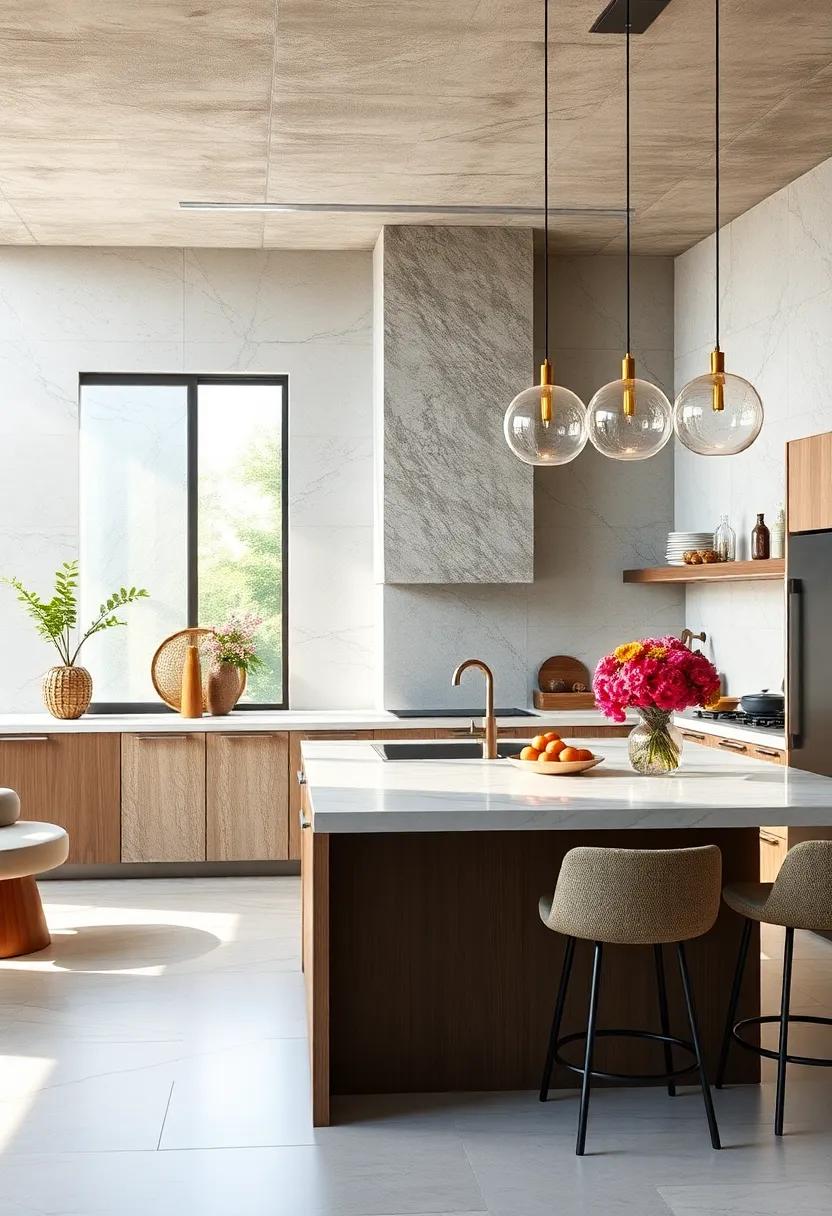 textured Layers: Incorporate various textures, such as smooth marble countertops, rough wooden beams, and soft textiles, for a layered look
