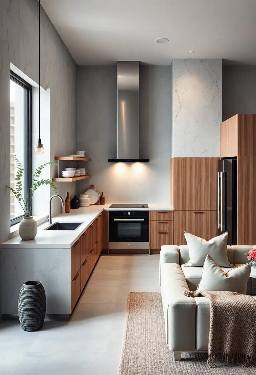 The minimalist approach ensures that every piece serves multiple functions, inspired by a philosophy of reducing clutter. Consider incorporating light-colored backsplash tiles that reflect light, further brightening the space. Accessories in muted tones—soft grays, whites, and earthy tans—complement the cabinetry and fixtures perfectly. Key design features may include: