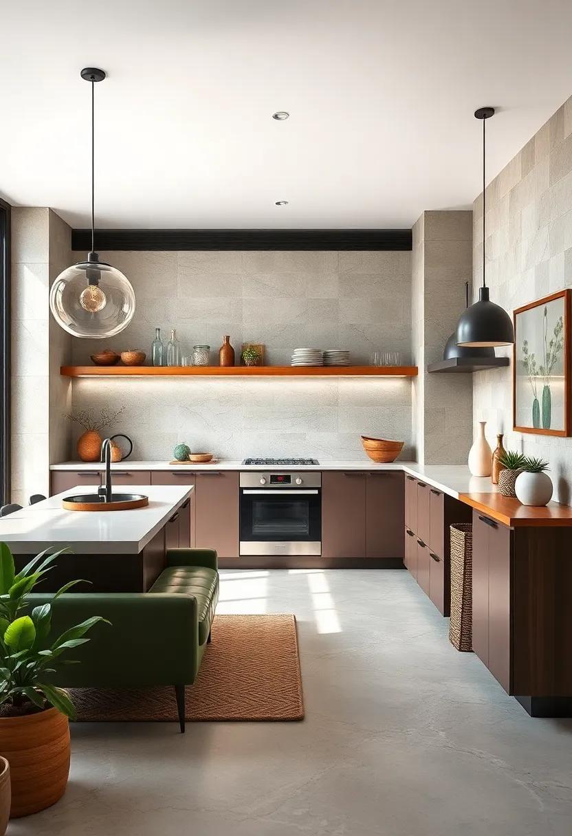- Structural Elements: Expose wooden beams or use reclaimed wood for shelving to add an earthy vibe.