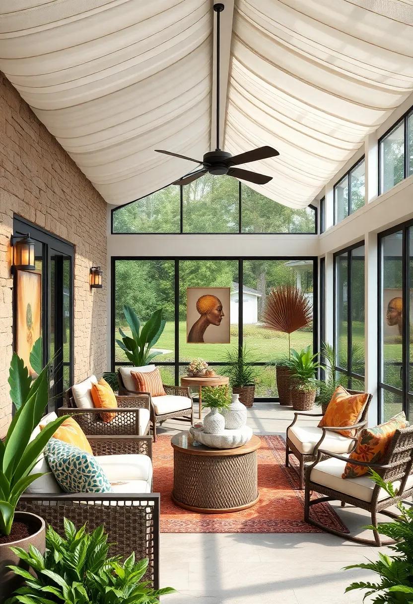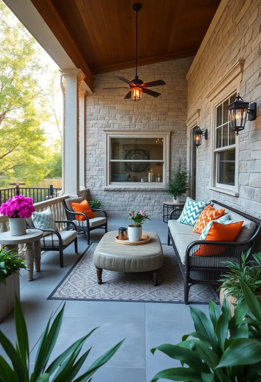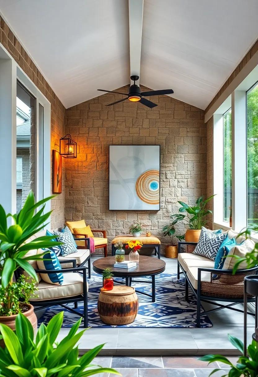 Artistic Retreat: Infused with colorful art pieces and unique sculptures, this porch becomes a canvas showcasing creativity and inspiration