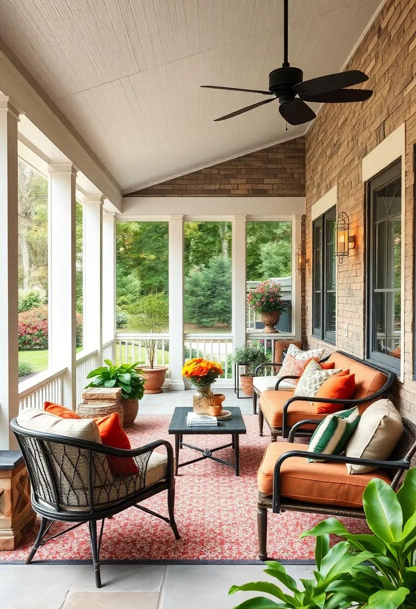 Eclectic Elegance: A curated mix of patterns, textures, and colors creates an eclectic yet elegant porch that reflects personal style and creativity