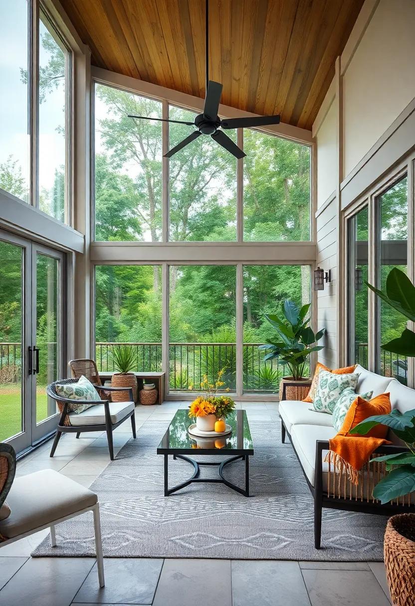the beauty of a chic urban design lies in its ability to create an illusion of expansiveness.When selecting accessories, keep it minimalist.Decorative items such as hanging planters or strategically placed mirrors can make the porch feel larger. incorporate a few statement pieces—a contemporary light fixture or an artistic sculpture—to infuse personality without overwhelming the space. Lighting plays a crucial role; use soft, warm tones strategically placed around the perimeter to create an inviting glow during evening hours. Not only will your screened porch become a tranquil escape from the bustle of city life, but it will also set a stylish precedent for outdoor living that speaks to your personal aesthetic.