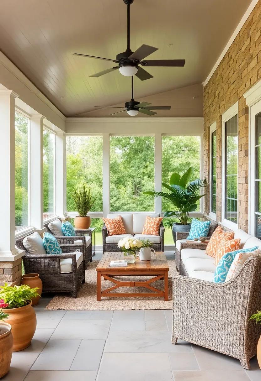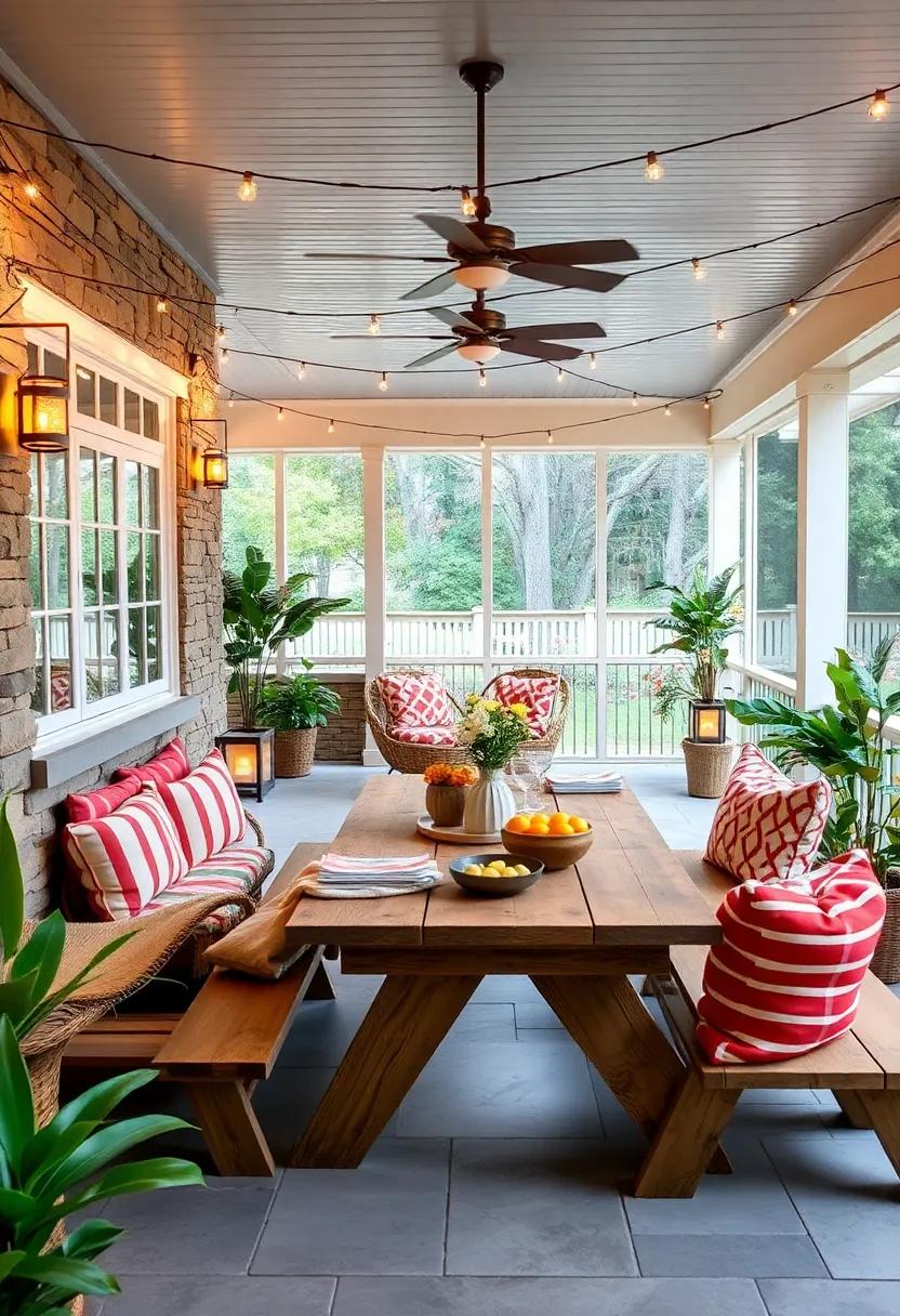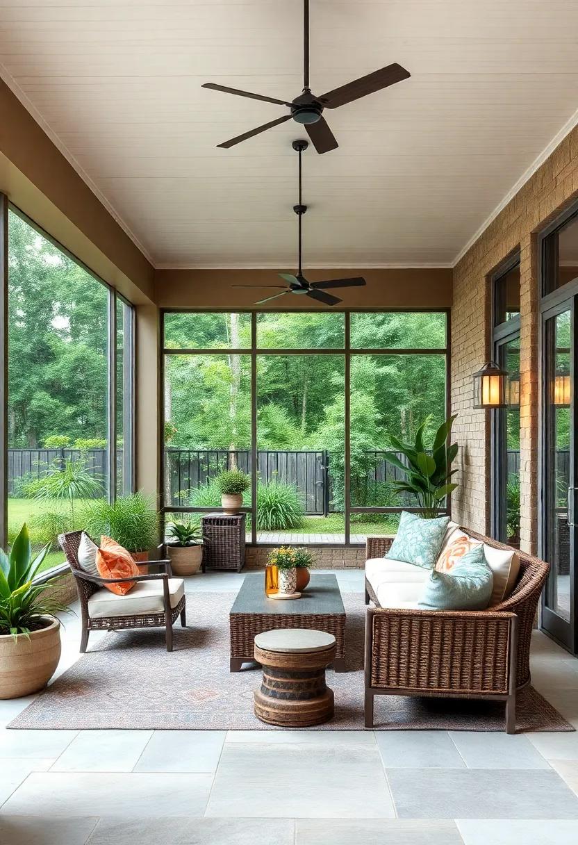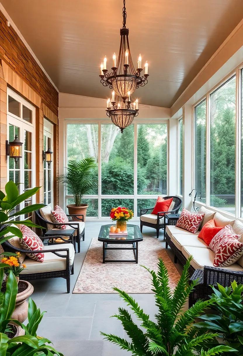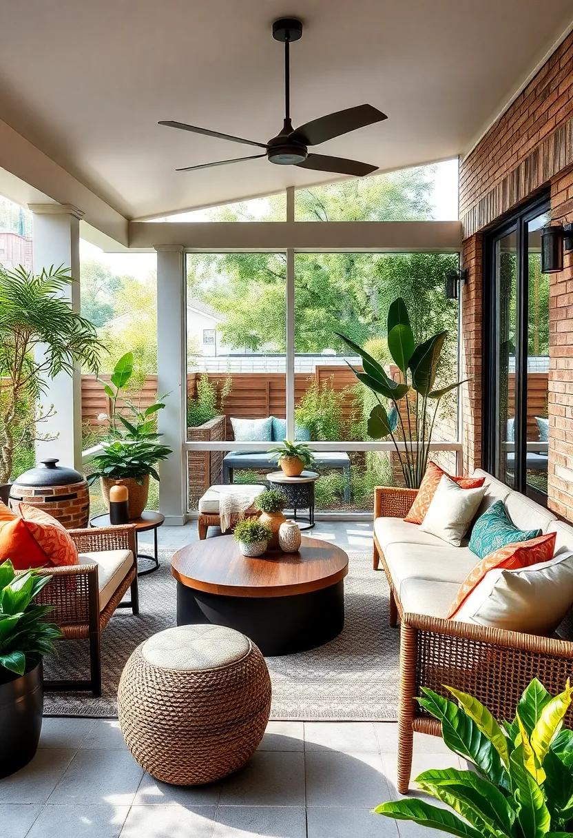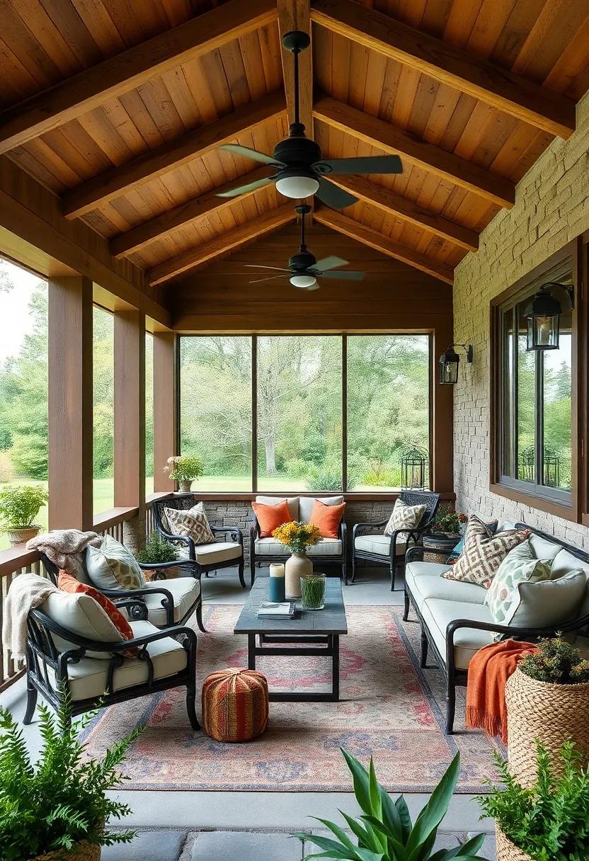 Transforming a screened porch into a masterpiece of eclectic elegance involves a well-curated mix of vibrant patterns, varied textures, and harmonious colors. Imagine a space where bold geometric print cushions coexist with soft, woven throws—each piece contributing to a rich tapestry of style.To achieve this look, consider incorporating a variety of seating options: perhaps a classic wicker chair paired with a contemporary metal bench. Use eclectic lanterns and artwork that reflect personal flair, ensuring that each item tells a story while maintaining an air of sophisticated cohesion.