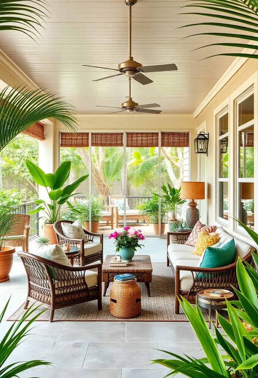 Incorporate unique elements to elevate your design to the next level of luxury. Consider adding thatched decor—whether it’s a ceiling fan finished with natural fibers or a beautifully crafted bar cart adorned with a bamboo finish. Stylish hanging lanterns with warm lighting can cast a cozy glow as the sun sets, adding a magical touch. To create a seamless indoor-outdoor flow, utilize large, open screens that maximize your views while providing protection from insects. Each carefully selected piece will contribute to a warm ambiance, inviting family and friends to unwind in your personal tropical haven.