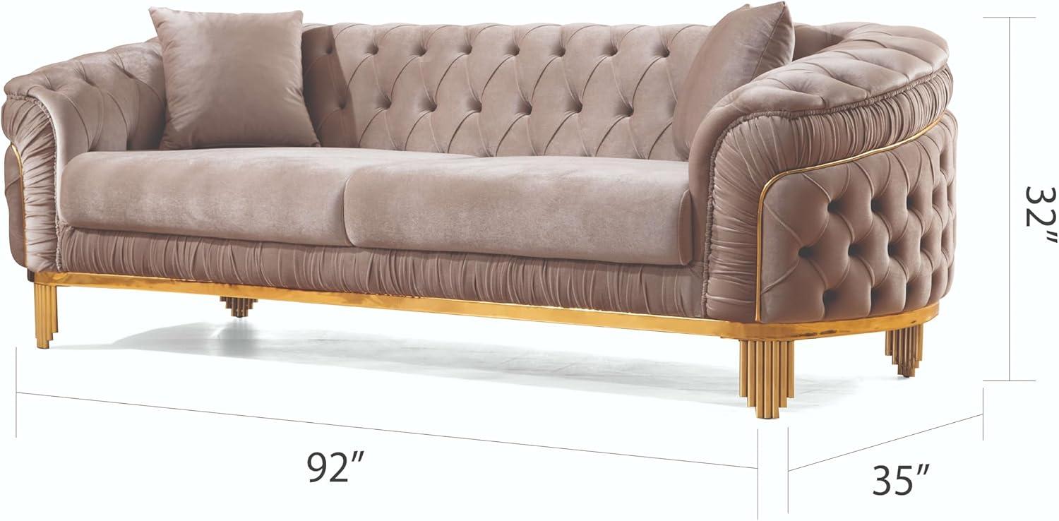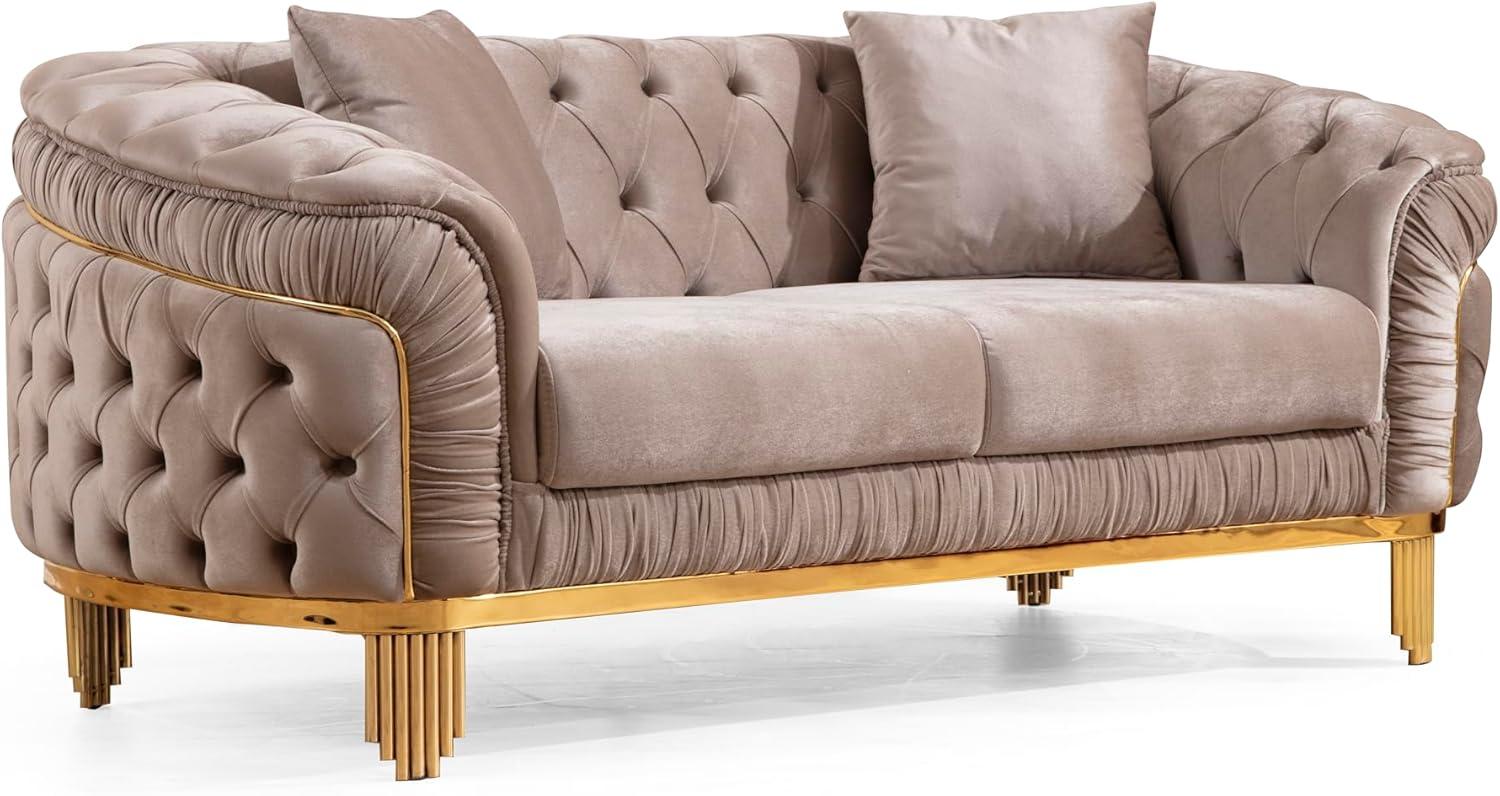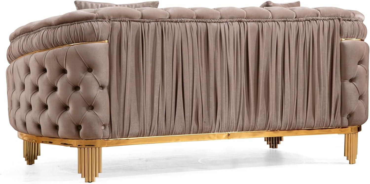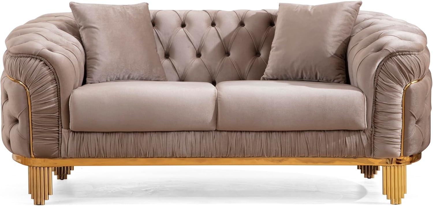 You press a palm into the taupe velvet and the texture registers immediately—soft, slightly dense, the button tufts forming ‌small dimples that catch afternoon light. The set, listed as ‍the 3 PC Livingroom Set with Fabric Button Tufted Velvet Upholstery, Wood in Taupe ⁣(no⁢ brand listed), arrived in​ your living room and sits with surprising visual weight: low-backed, broad-armed,‍ balanced on ⁣slim gold-plated legs. You notice the⁢ waterfall seam at the ⁢front and how the coil-sprung seats⁤ give a ​swift, springy rebound​ the first time you sit. In⁤ daylight the‍ fabric leans warm and neutral; under a ​lamp the metallic legs wink and the silhouette takes ⁢on a quietly glamorous air.