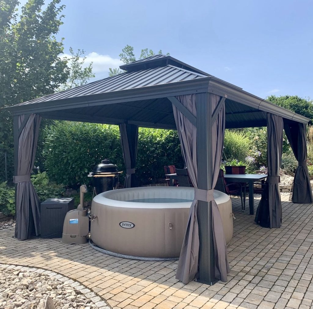 6. Enclosed Gazebo Featuring Hot Tub Comfort