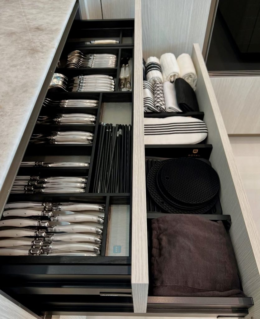 Monochrome Flatware Storage with Elegant Trays