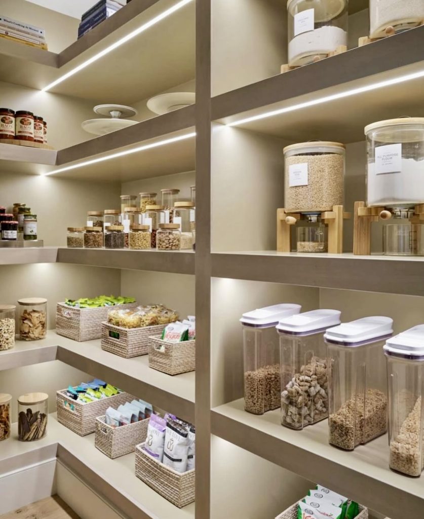 Modern Pantry with Woven Baskets and Dispensers
