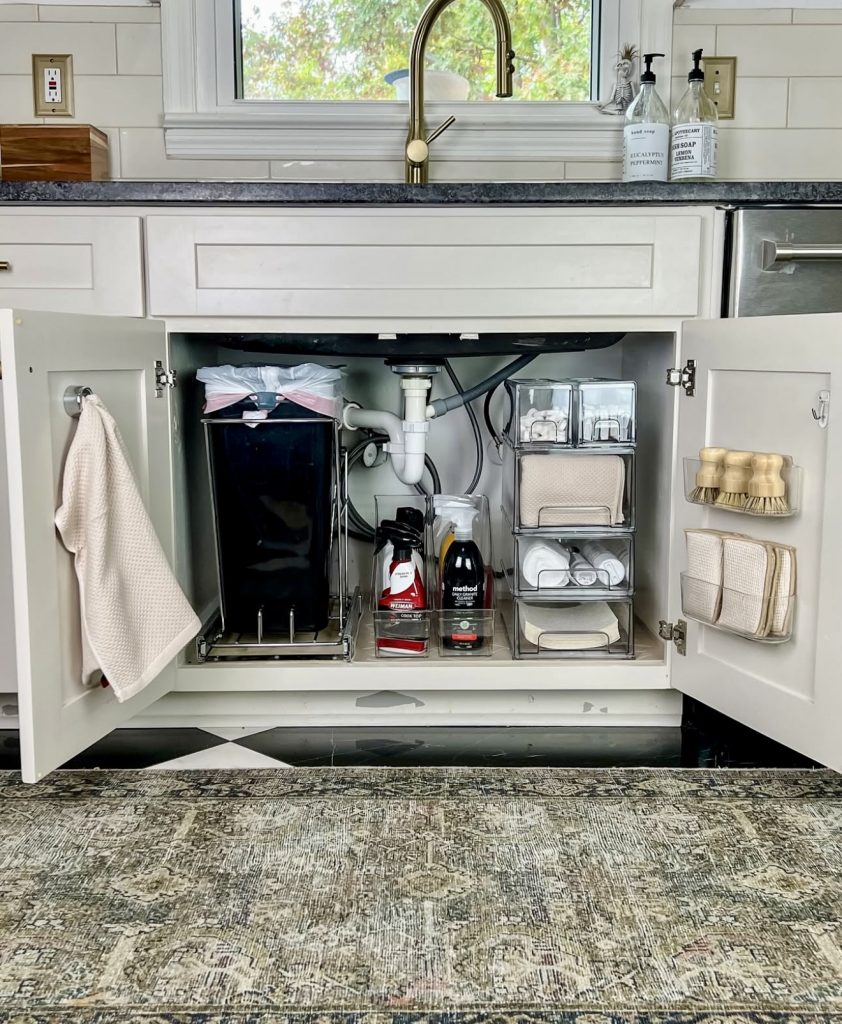 Under-Sink Cabinet with Dedicated Zones for Cleaning Supplies