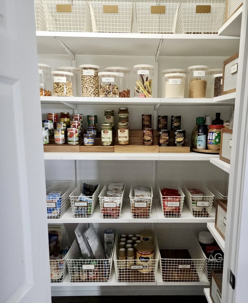 White Wire Basket Pantry for Efficient Dry Goods Storage