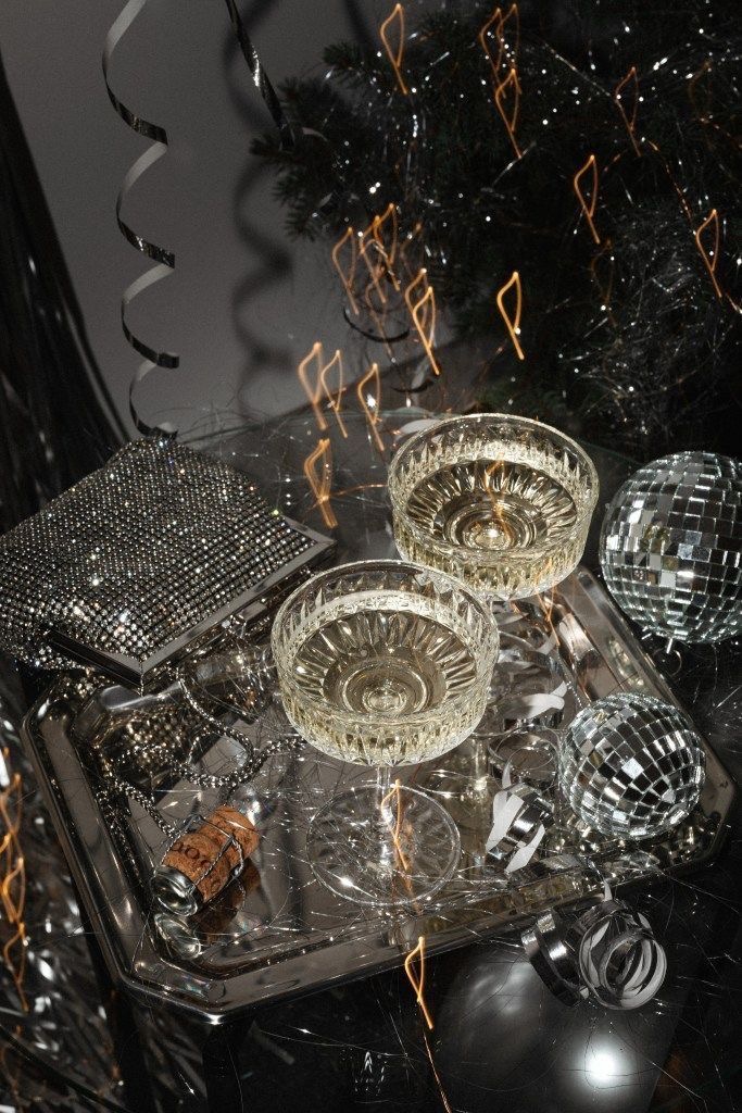 Nothing epitomizes New Year’s Eve glamour like champagne served in vintage coupe glasses. Paired with disco balls, silver accents, and sparkling clutches, this detail adds a luxurious touch to your celebration. Small styling choices like these complement the overall aesthetic, ensuring your wedding feels polished and cohesive. Guests will appreciate these thoughtful elements, which also make for stunning photographs.