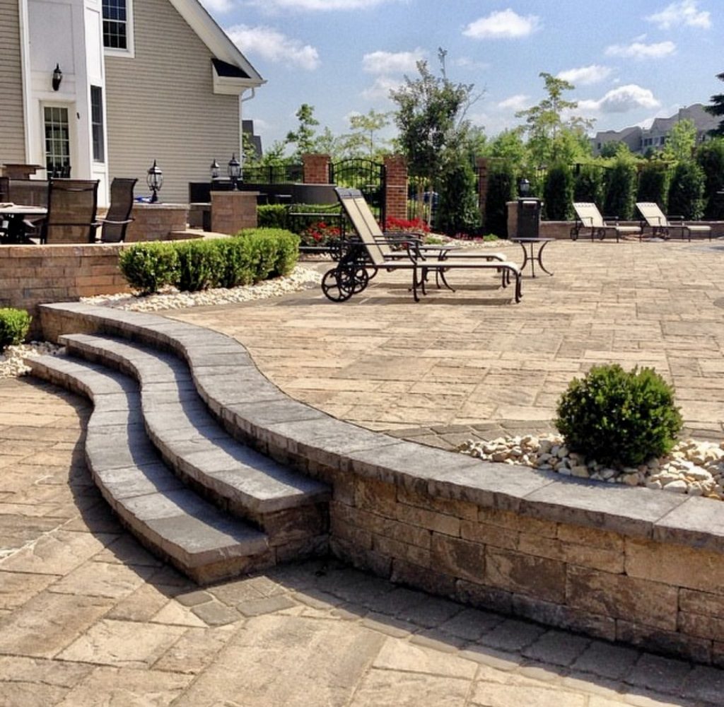 Organic Curved Patio with Layered Steps and Earthy Hues