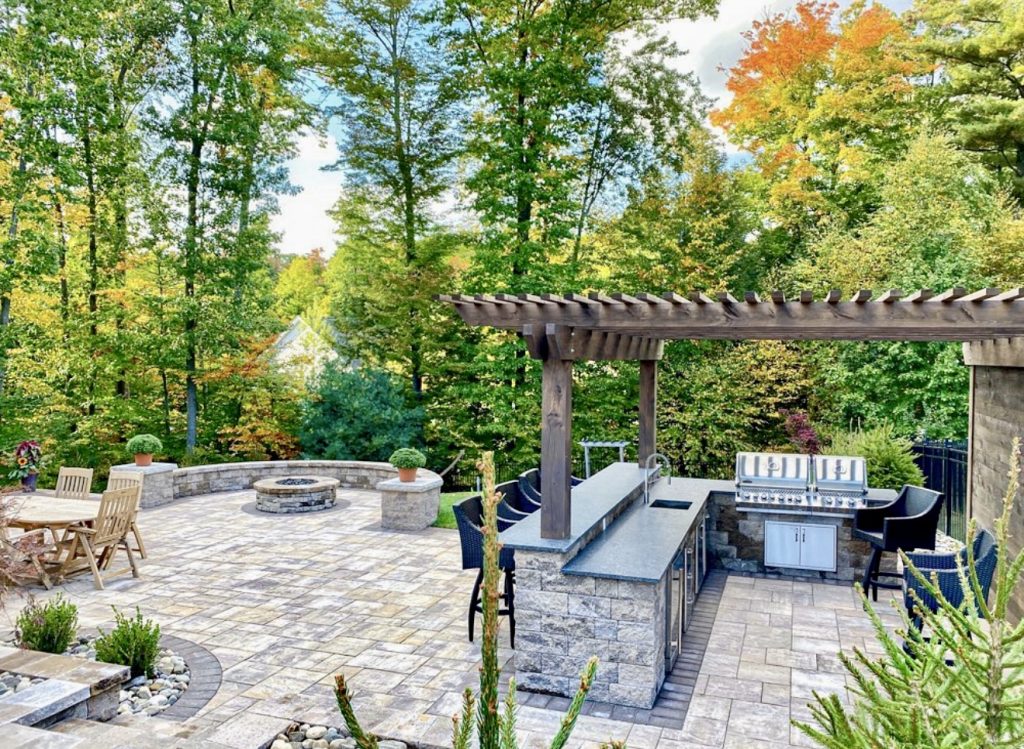 Outdoor Kitchen Patio with Pergola and Zoned Layout