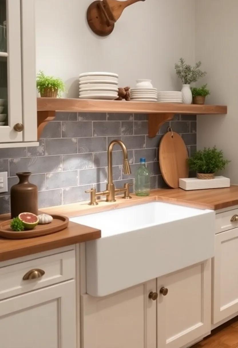 - Stone: Opt for a stone backsplash or a farmhouse sink to bring in a rugged and earthy element.