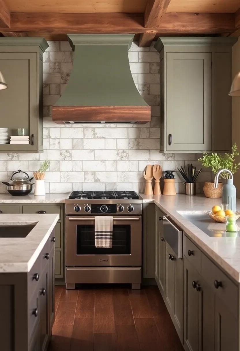 Incorporating earthy tones like warm browns, soft greens, and deep reds can help to create a sense of harmony and balance in your kitchen. Consider painting your cabinets in a rich earthy color, such as a deep forest green or a warm chocolate brown. Pair these colors with natural wood accents, like exposed ceiling beams or a reclaimed wood kitchen island, to add a touch of rustic elegance to the space.