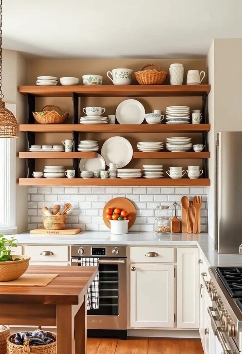 Open shelving allows you to showcase your favorite dishes, glassware, and cookware while also creating the illusion of a larger space. By utilizing open shelves, you can easily access your most used items and keep your kitchen organized. Embrace the idea of displaying your collection of vintage mugs or heirloom plates on rustic wooden shelves for a personal touch.