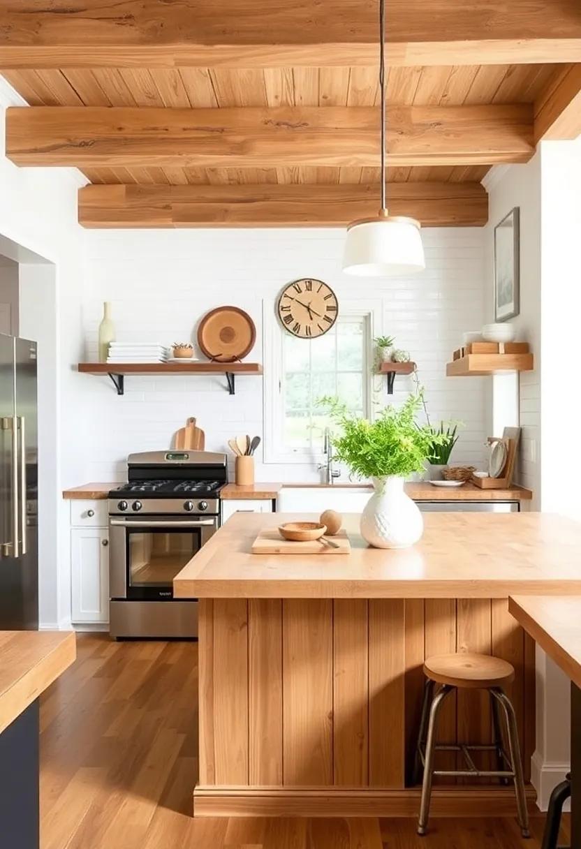 Another way to incorporate rustic wood accents is by using wooden beams on the ceiling. Exposed wooden beams can add a touch of warmth and character to a modern farmhouse kitchen. Whether you choose to stain or whitewash the wood, this design element can instantly elevate the overall aesthetic of your kitchen.
