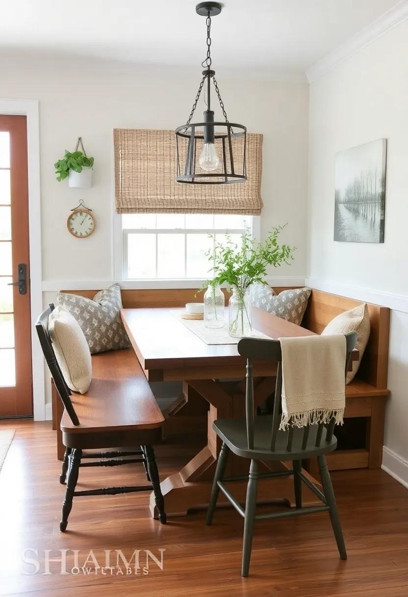 One way to enhance your dining nook is by adding a rustic wooden table with bench seating. This will not only provide a charming farmhouse touch but also maximize seating capacity in a small space. Consider mixing and matching different chair styles for an eclectic look that adds character to the room.
