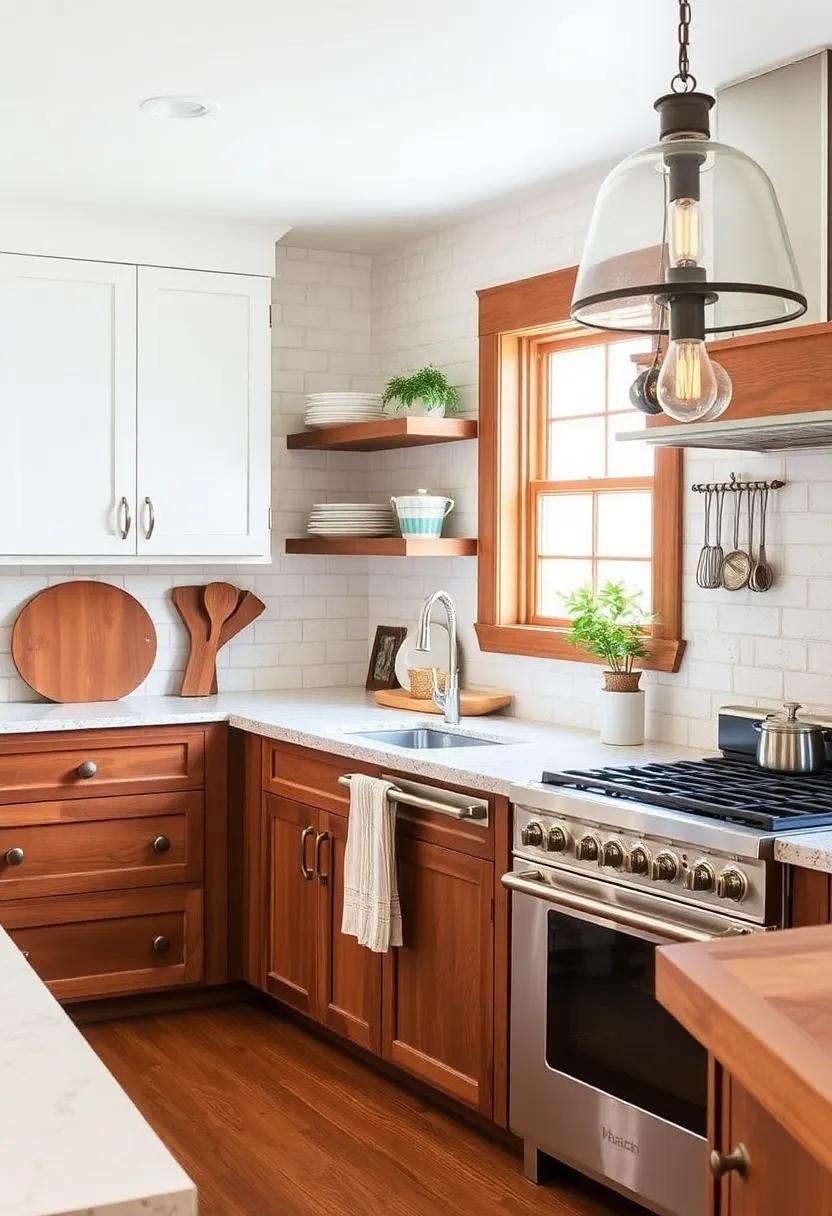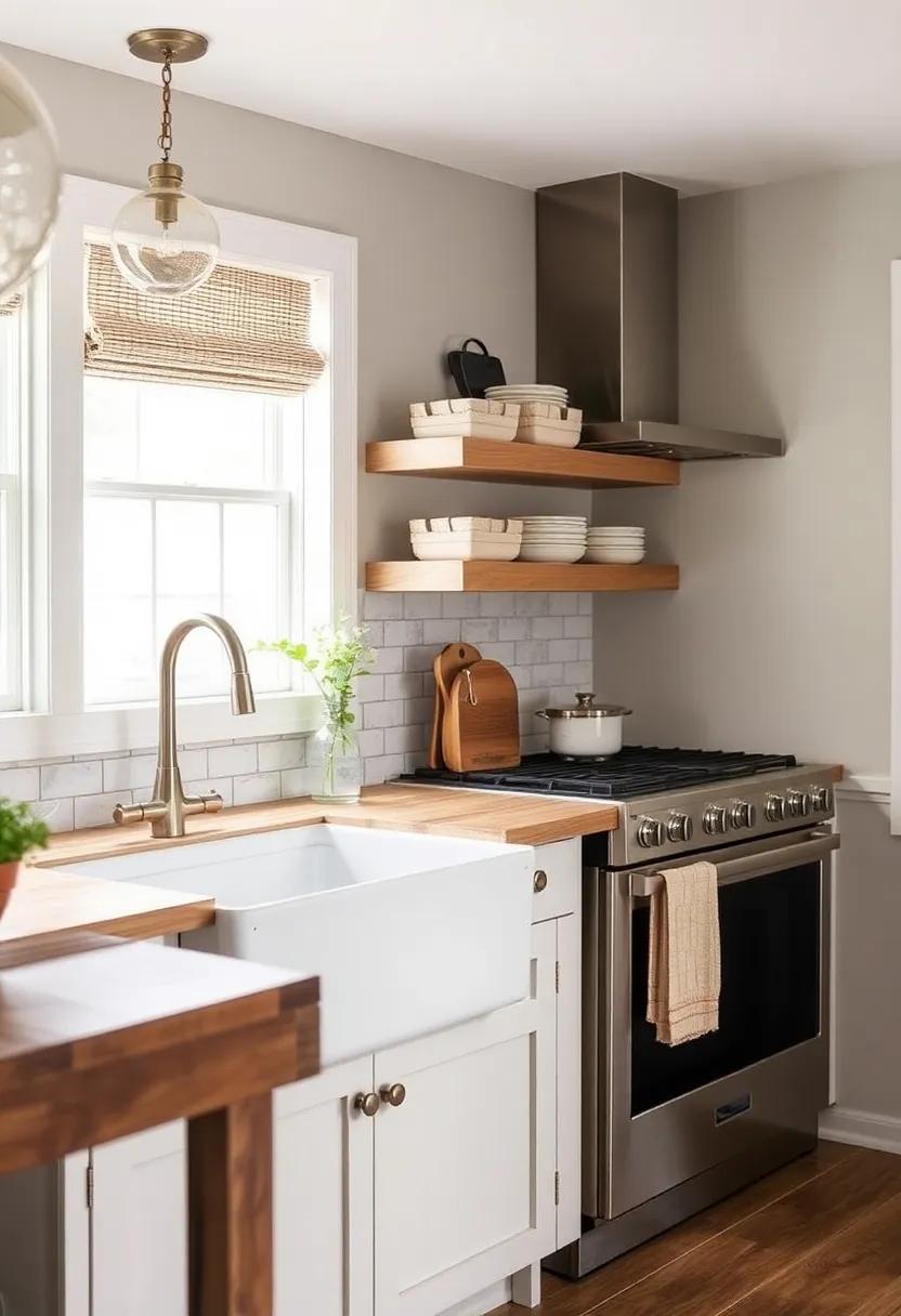 Don’t forget to add small rustic wood accents throughout your kitchen, such as wooden cutting boards, bowls, or even a wooden clock. These subtle touches can tie the space together and create a cohesive farmhouse look. Embrace the beauty of natural wood in your kitchen design to achieve a modern farmhouse style that is both timeless and inviting.