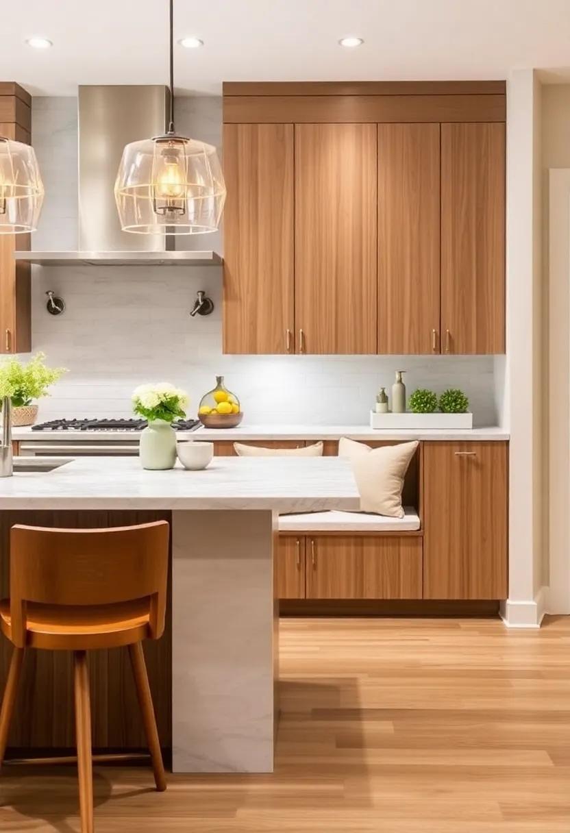 Adding lighting to your seating arrangements can completely transform the ambiance of your kitchen island. Whether you prefer a cozy setting for family dinners or a sleek design for entertaining guests, integrating lighting with your seating can make a significant impact. Consider pendant lights hanging above the seating area to provide both function and style.