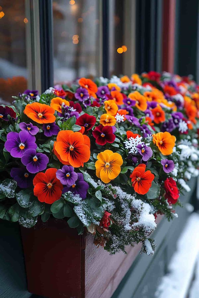The rich, cheerful hues of winter blooms like cyclamen and pansies bring life to your home in winter. Arrange them in a window box with delicate snowflake decorations and frosty evergreens for a vibrant floral arrangement!