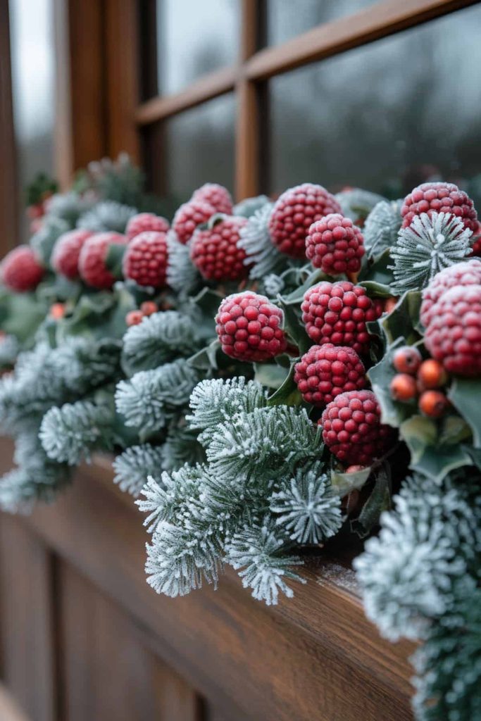 Don’t want to think too much about the design of your window box? For a simple yet charming presentation, simply combine berries with pine branches. This arrangement is easy to put together and adds a pop of color.