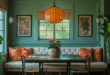 - Rattan or woven pendant lights that cast soft, organic shadows
