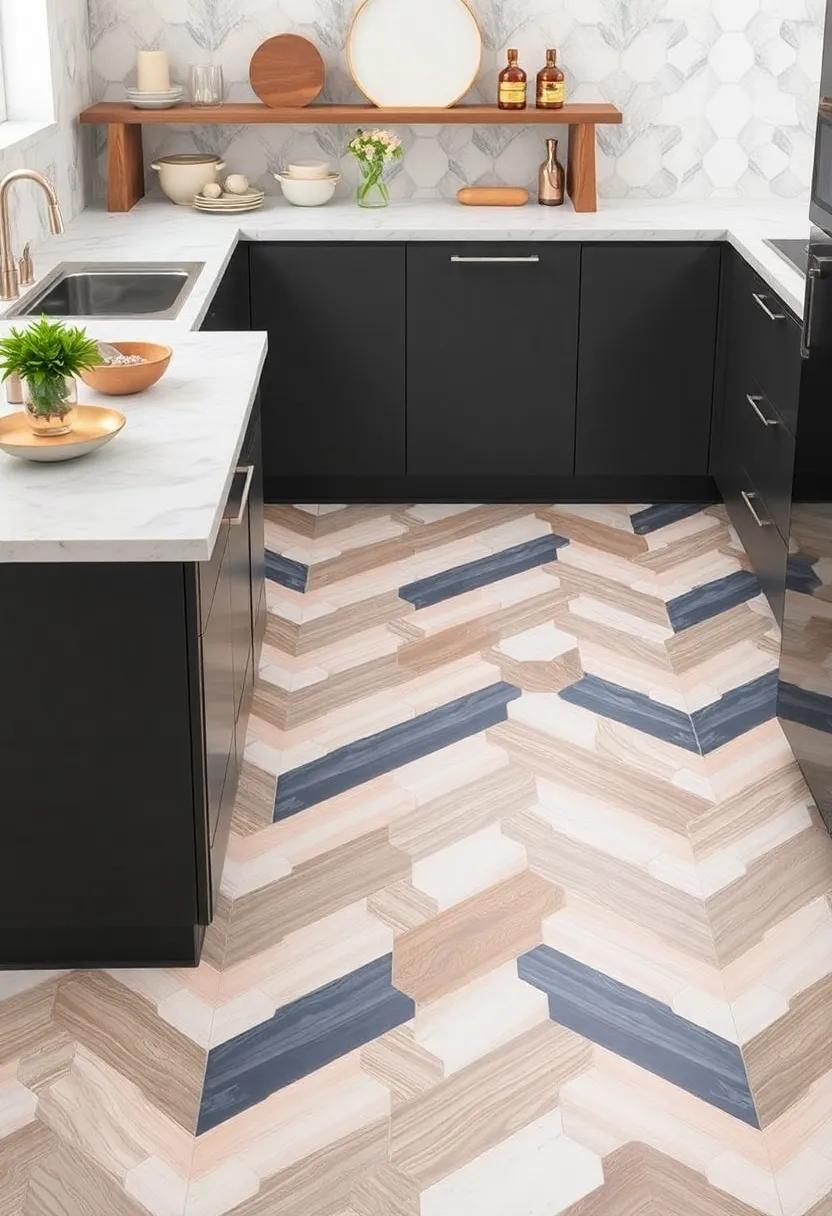 **Why stick to one type of tile when you can create a stunning mosaic on your kitchen floor?** Here are some ideas to inspire your tile mixing and matching journey:
