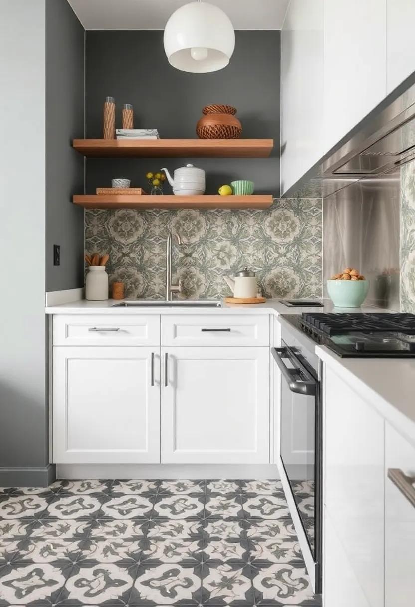 A: Consider using colorful mosaic tiles, or opt for a bold patterned tile in a vibrant hue to add a pop of color to your kitchen.