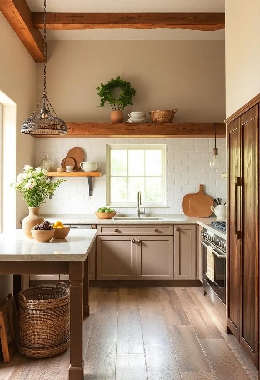 Pairing your earthy toned floor tiles with neutral colored cabinets and countertops can create a cohesive and harmonious look in your kitchen. Add pops of color with accessories like ceramic dishes, woven baskets, or fresh flowers to complete the rustic vibe of your space.