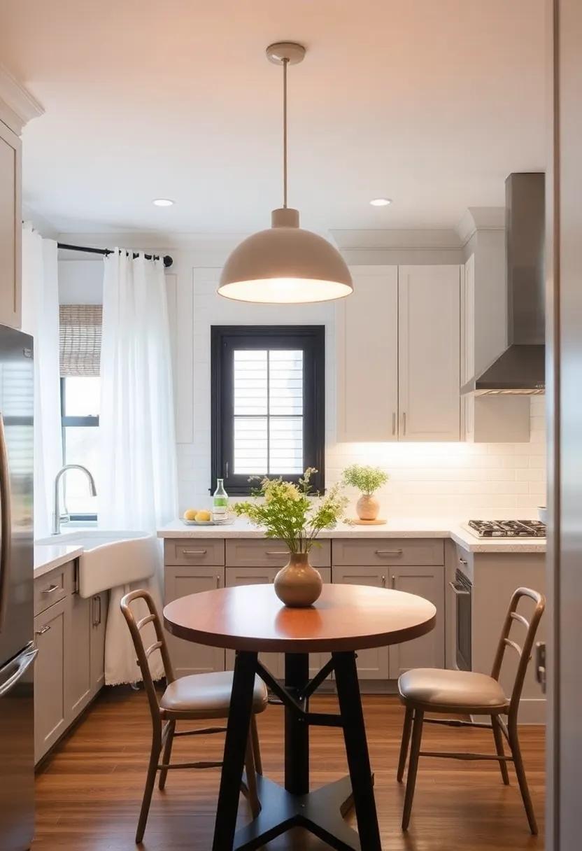 Another creative way to utilize space in a small kitchen ⁤is by⁣ incorporating a kitchen ‌island that doubles as a dining table. A compact island with ⁢a ‌drop-leaf table extension can be a ⁣game-changer in a tiny ​kitchen. This versatile ​piece⁣ of ‍furniture can ‍be used for meal prep, dining,‍ and ​even as⁤ a workstation for various tasks. Pair it‍ with stackable ​stools ​that​ can be easily tucked away when not in use ⁢to save even more ⁣space.
