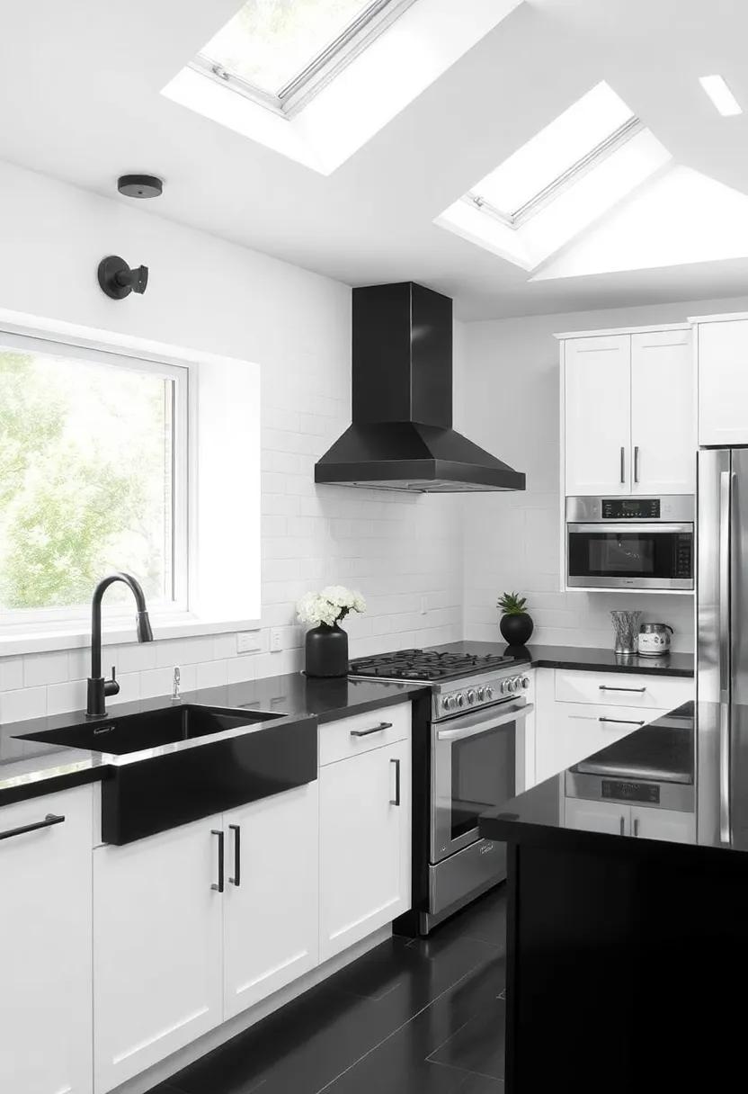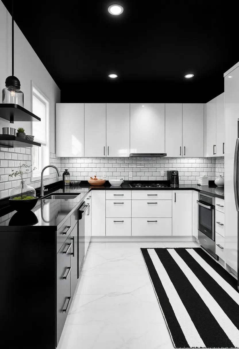 One way to incorporate black and white into your kitchen is by opting for sleek black countertops paired with crisp white cabinets. This timeless combination creates a modern and chic look that will stand the test of time.