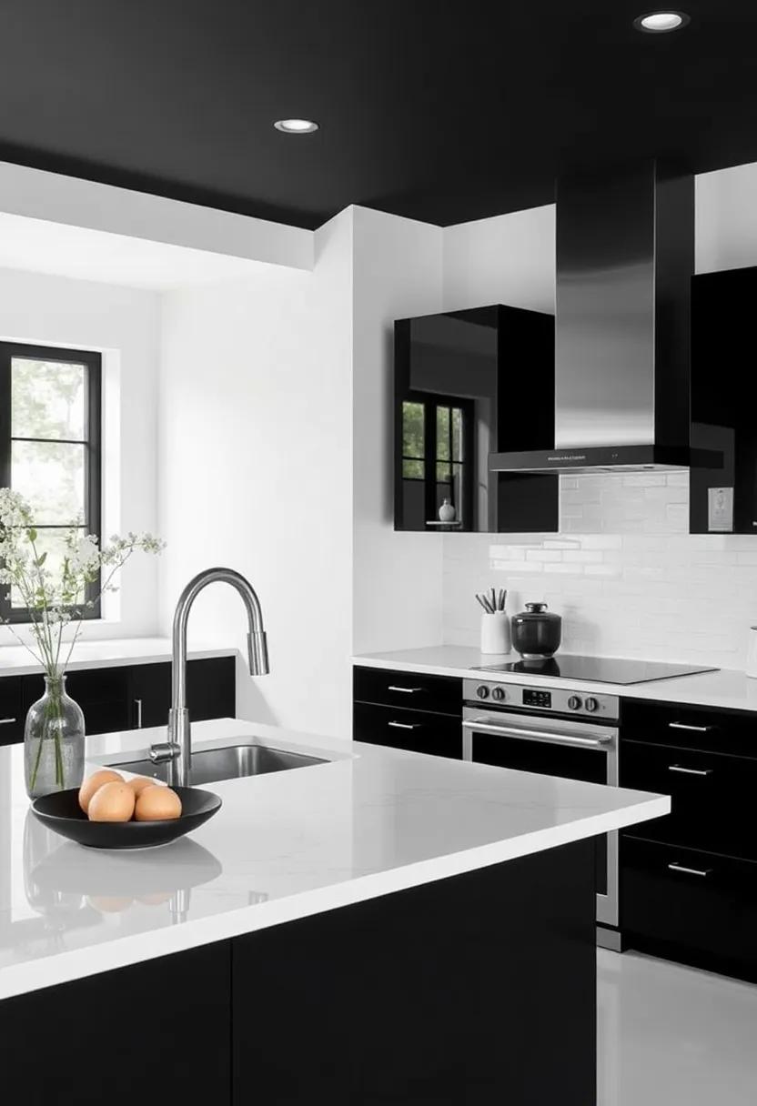 One way to incorporate black and white into your kitchen is by opting for sleek black cabinets paired with white countertops. This juxtaposition creates a striking visual contrast that is both modern and chic. You can further enhance this monochrome look by adding black hardware and fixtures for a cohesive design scheme.