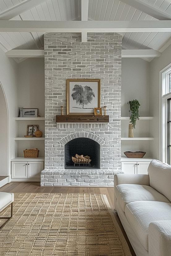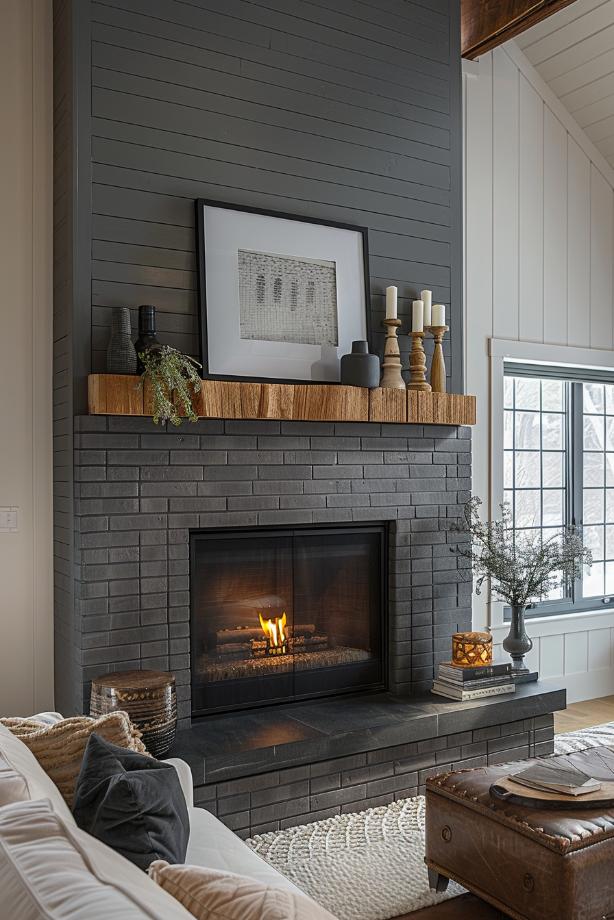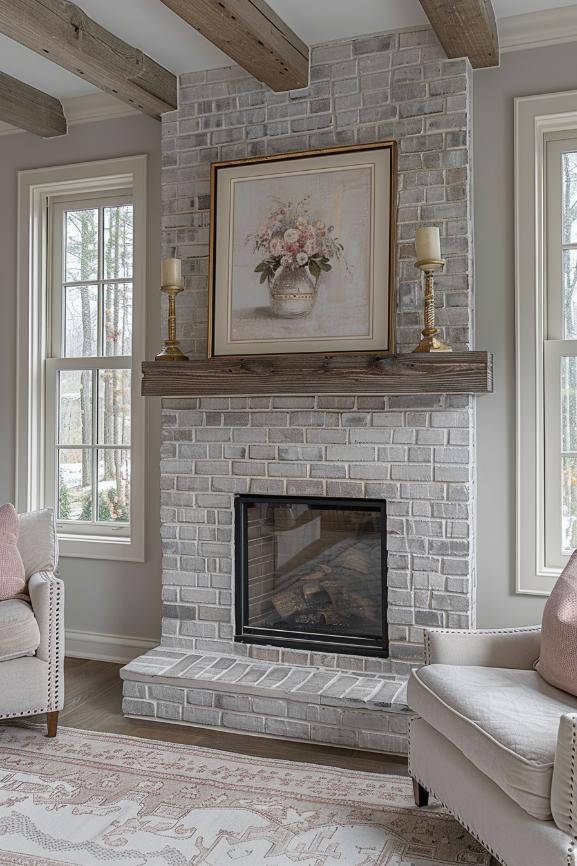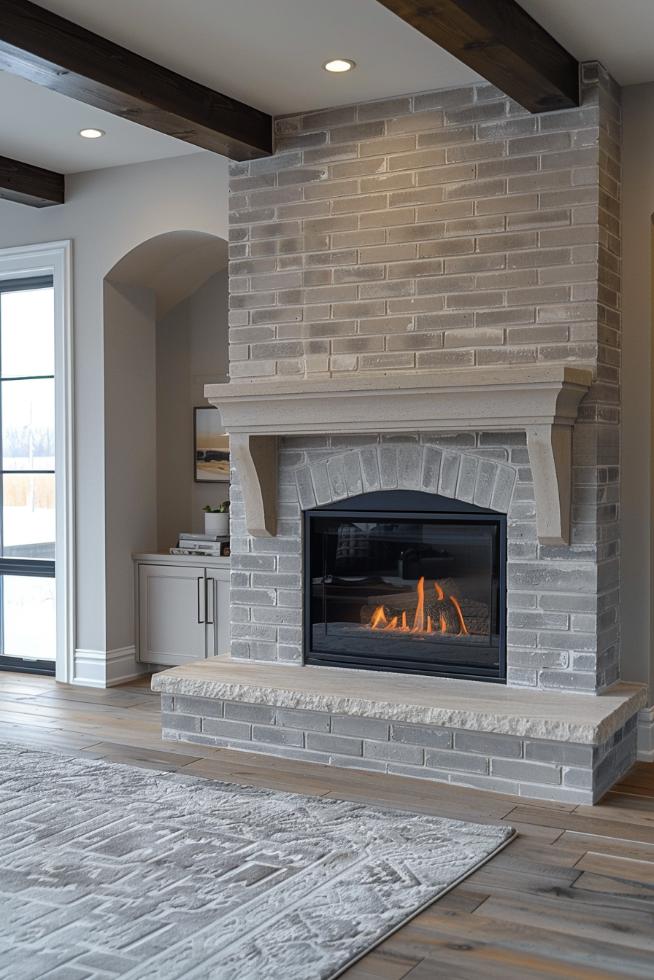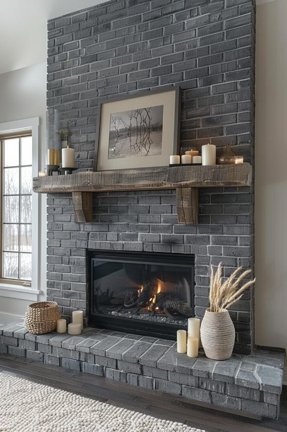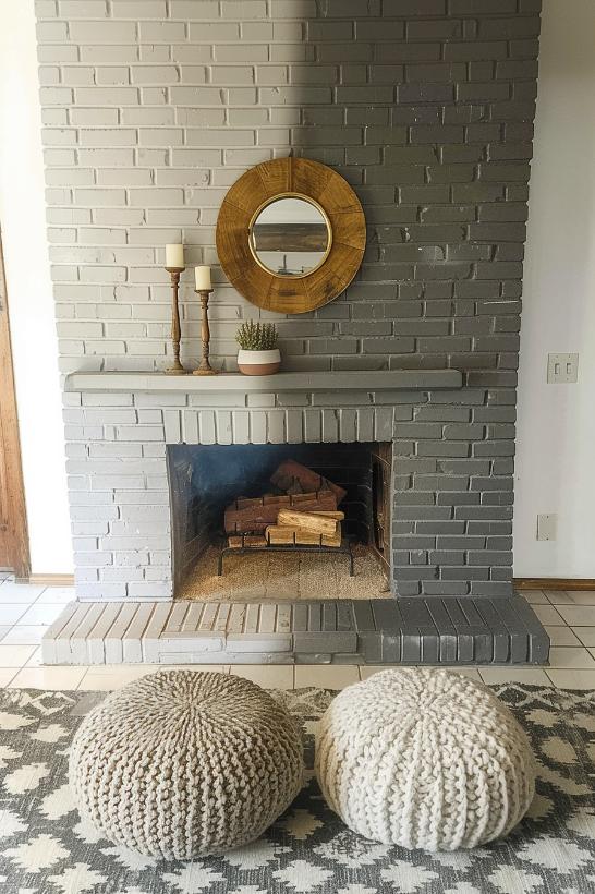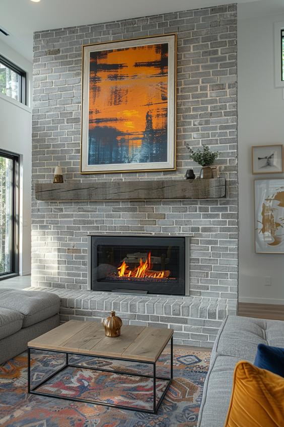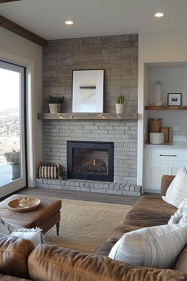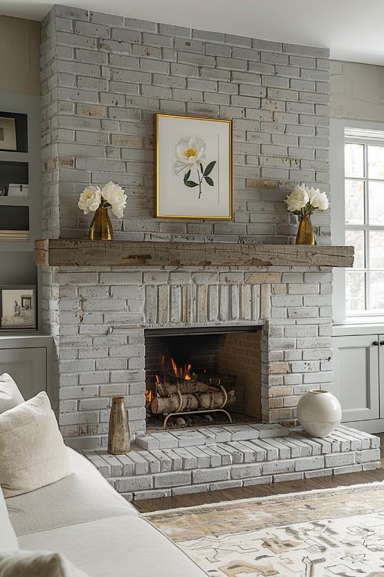 This gray brick fireplace bridges the traditional charm of a classic brick fireplace with the smooth sleepy of a sleepy white environment and a coat to ensure timeless attractiveness that looks fantastic in an airy living space.