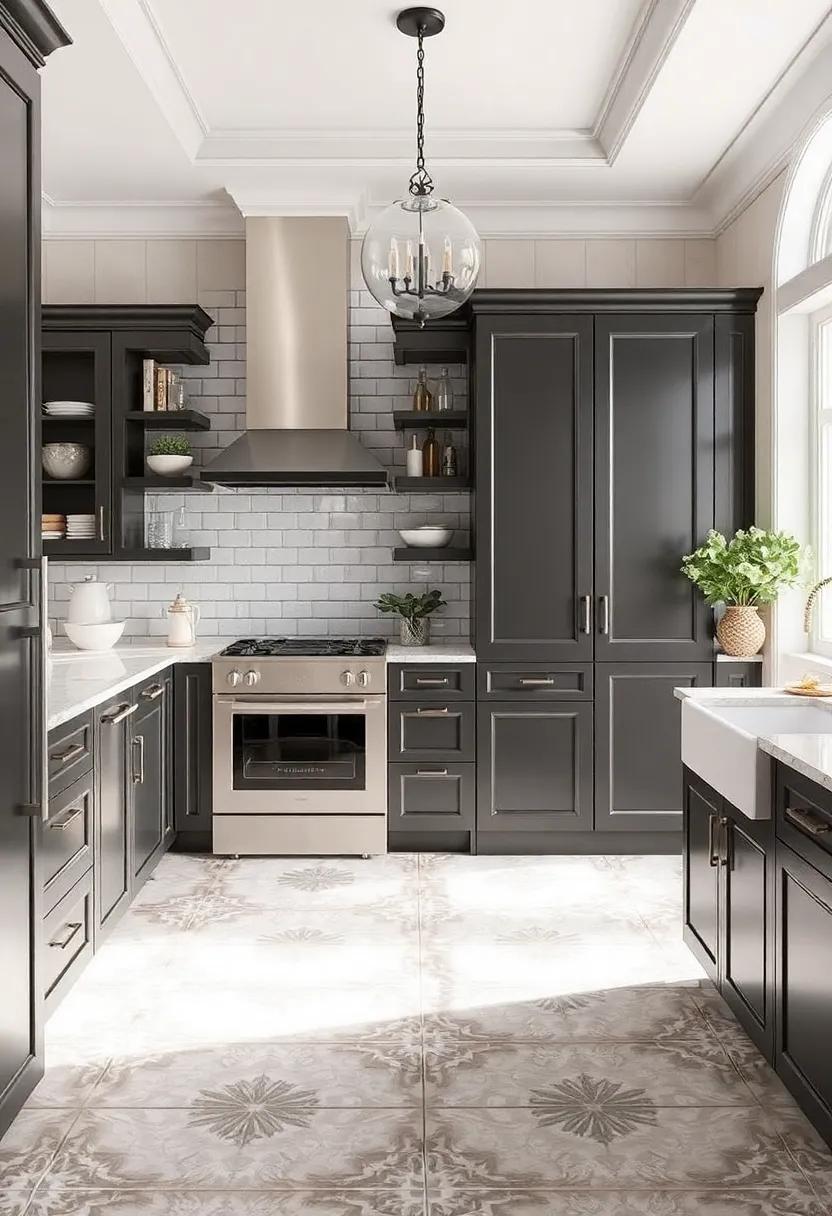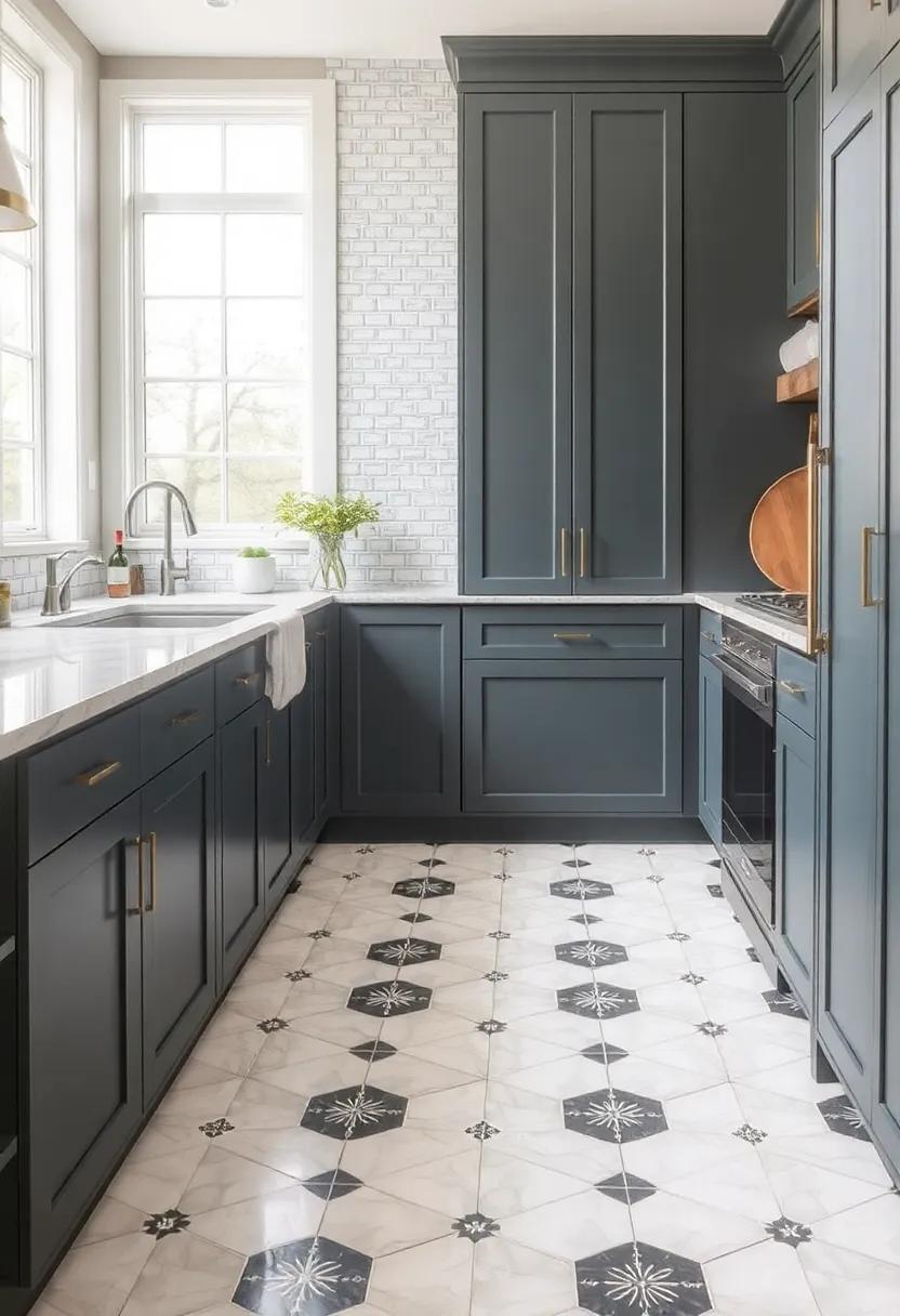 Create a cohesive kitchen design by incorporating stylish floor tiles that tie the space together: