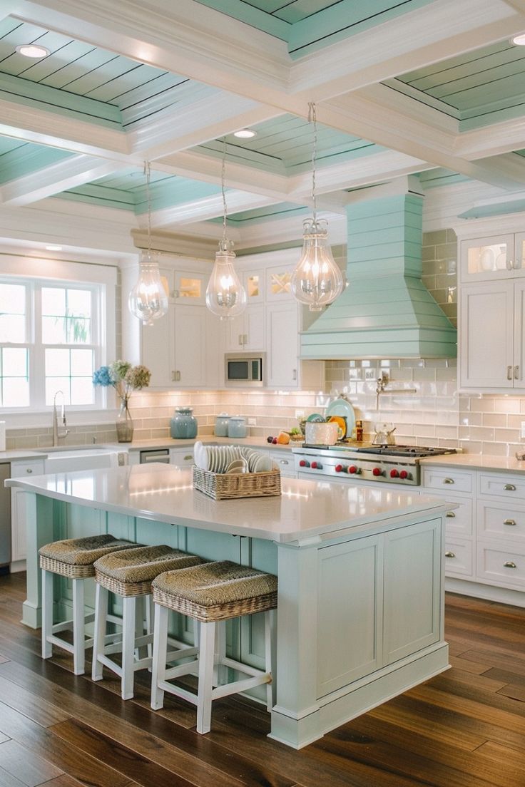 Consider incorporating natural elements like wooden cutting boards and woven baskets to complement the white and mint green color scheme. Additionally, hanging plants or herb gardens can bring a refreshing touch of greenery to the space. By , you can create a whimsical kitchen design that is both stylish and welcoming.