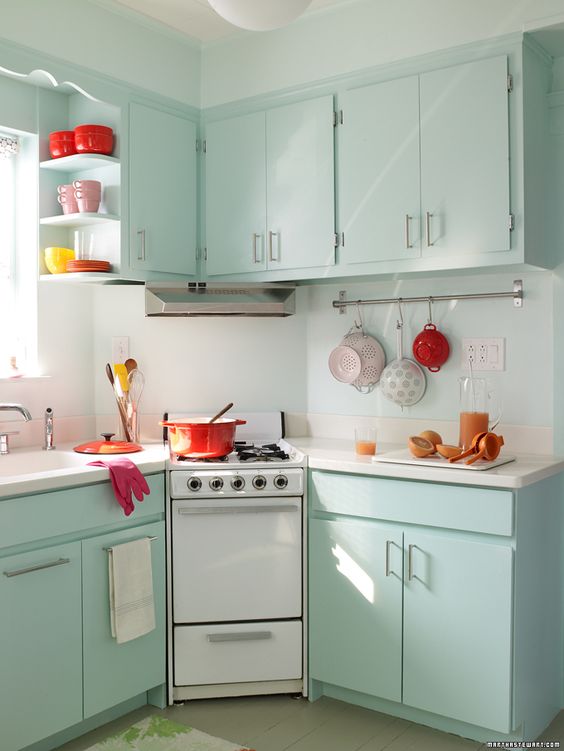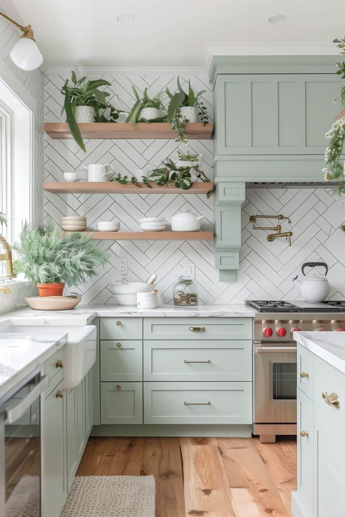 One way to incorporate mint green accents into your kitchen is by adding them to your cabinets or kitchen island. Consider painting your lower cabinets a soft mint green while keeping the upper cabinets white for a fresh and modern look. This color combination will create a balanced and airy feel in your kitchen, perfect for a light and whimsical aesthetic.