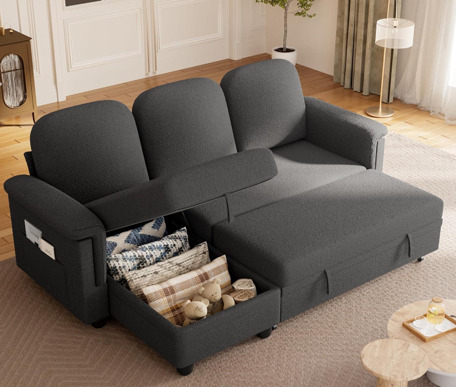 Your first look inside⁣ the YESHOMY Sleeper L shaped sectional in deep grey